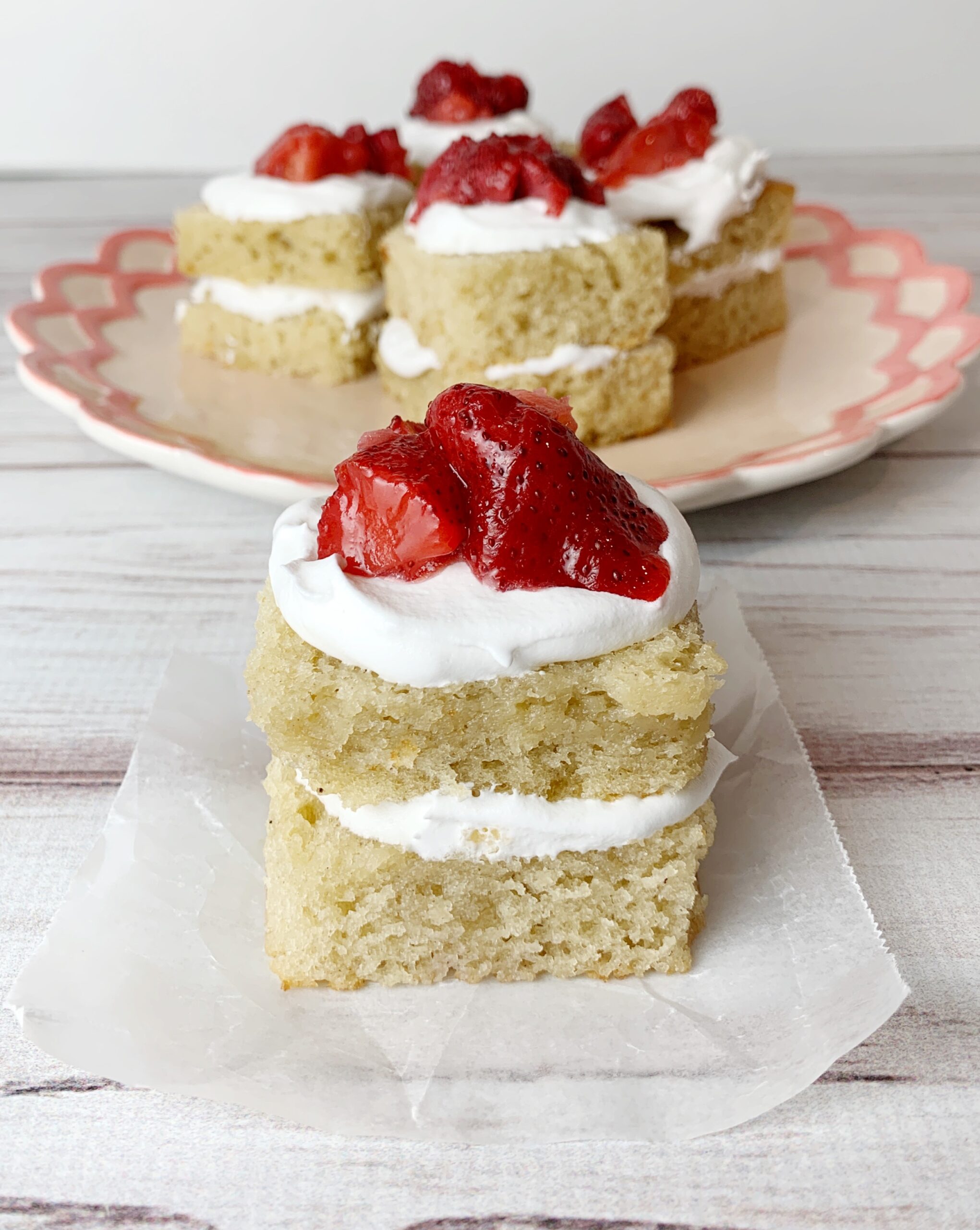 These strawberry shortcakes are made using a soft, moist vanilla cake and layered with Cool Whip and strawberries. Cut into squares for individual portions and easy serving!